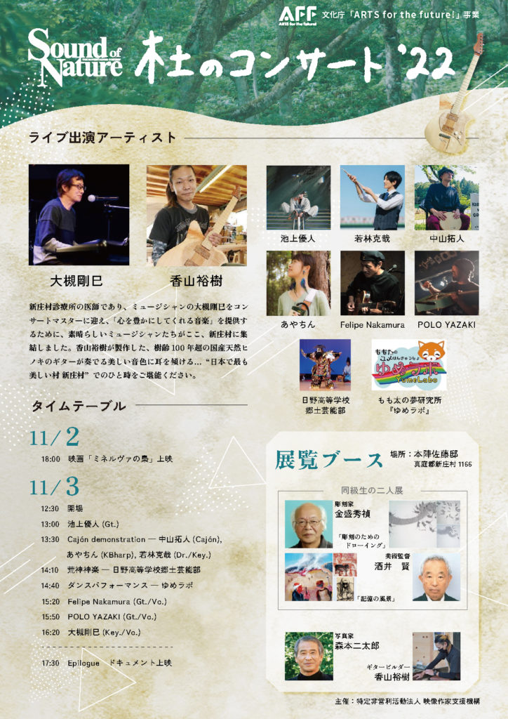 新庄村診療所の医師であり、ミュージシャンの大槻剛巳をコンサートマスターに迎え、「心を豊かにしてくれる音楽」を提供するために、素晴らしいミュージシャンたちがここ、新庄村に集結しました。